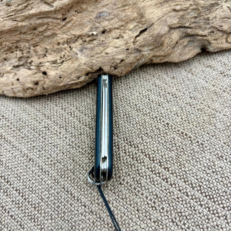 Crafted with the precision that Victorinox is renowned for, the CLASSIC SD Small Swiss Army Knife is an essential tool for any situation. Its sleek black Cellidor handle provides a secure grip while the stainless steel blade ensures durability. The knife features a manual opening mechanism and a slipjoint lock for safety and convenience. This versatile pocketknife includes a variety of tools including scissors, tweezers, a toothpick, a nail file with a screwdriver tip, and a pen blade. The compact 58mm size makes it easy to carry, and being an original Swiss-made product, you can trust in its quality and reliability. The handles have wear, knife needs cleaned, everything works.